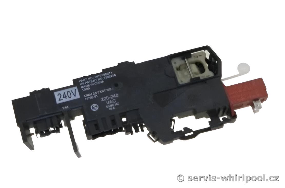Originální zámek (blokování) dveří pro poloprofesionální automatické pračky značky Whirlpool. Tento robustní bezpečnostní prvek zajišťuje spolehlivé uzamčení dvířek během náročného provozu a zabraňuje jejich otevření, dokud není prací program bezpečně ukončen.