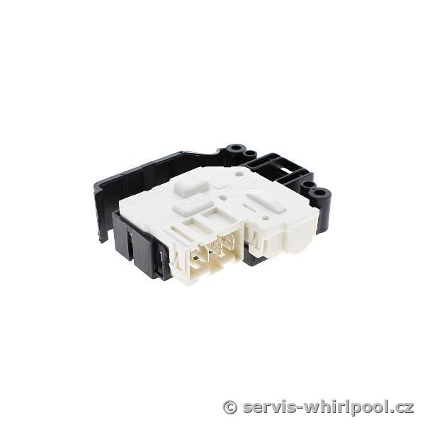 Originální zámek (blokování) dveří pro automatické pračky značek Indesit a Hotpoint. Tento bezpečnostní prvek zajišťuje pevné uzamčení dvířek během pracího cyklu a zabraňuje jejich otevření, dokud není program bezpečně ukončen a voda odčerpána.
