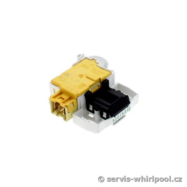 Originální zámek (blokování) dveří pro automatické pračky značky Indesit. Tento bezpečnostní prvek zajišťuje pevné uzamčení dvířek během pracího cyklu a zabraňuje jejich otevření, dokud není program bezpečně ukončen a voda odčerpána.