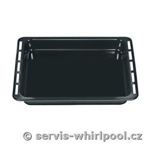 Originální hluboký smaltovaný plech (kód 481010657928) v černém provedení, určený pro vestavné a volně stojící trouby ze skupiny Whirlpool Group (včetně značek Indesit, Bauknecht, Hotpoint).