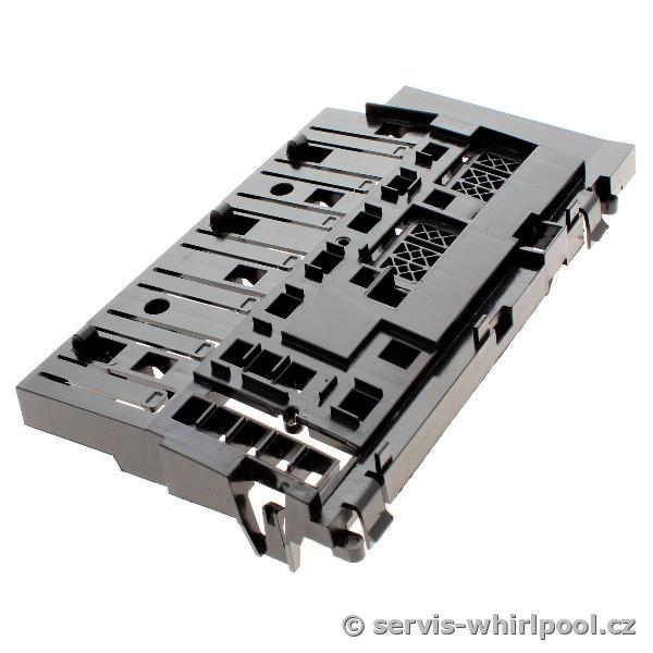 Držák ovládací elektroniky 481010765238 je originální plastový komponent (šasi), který slouží k bezpečnému a stabilnímu uchycení desky uživatelského rozhraní v horním panelu pračky. Tento díl chrání citlivé elektronické obvody před mechanickým namáháním a zajišťuje přesné lícování tlačítek a displeje s ovládací maskou spotřebiče.