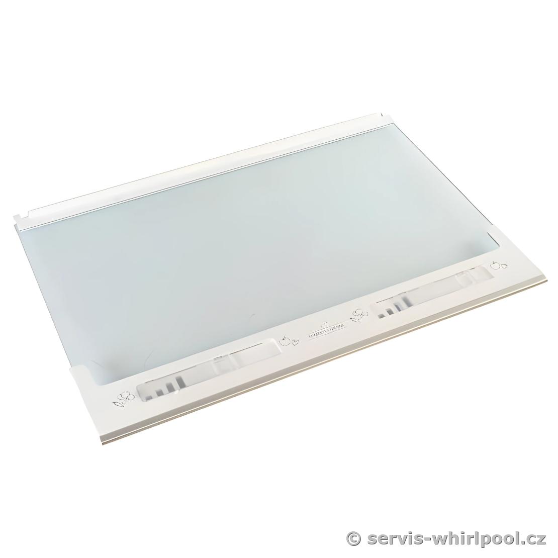 Skleněná police nad zásuvku na zeleninu chladničky Whirlpool je dodávána včetně ochraných plastových lišt.