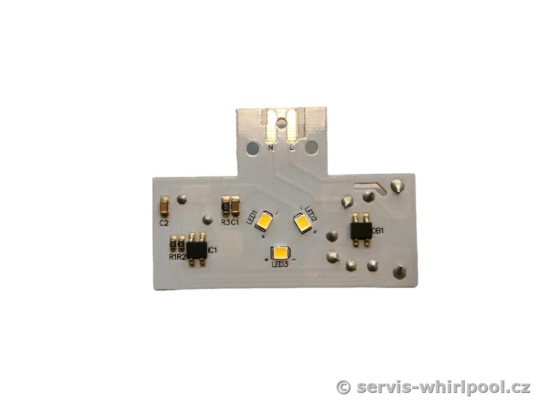 Originální LED modul osvětlení (C00738190) s vysokou svítivostí 180 lm pro kombinované chladničky Whirlpool, Indesit a Bauknecht. Tento modul je konstruován pro přímé napájení 230V / 50Hz a zajišťuje jasné a rovnoměrné osvětlení vnitřního prostoru chladničky při zachování minimální energetické náročnosti.