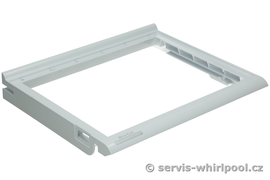 Spodní rám krycí desky umístěné mezi šuplíky americké chladničky Whirlpool.