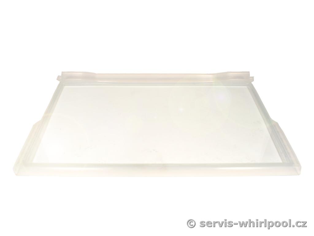 Skleněná police s rámováním z průhledného plastu.