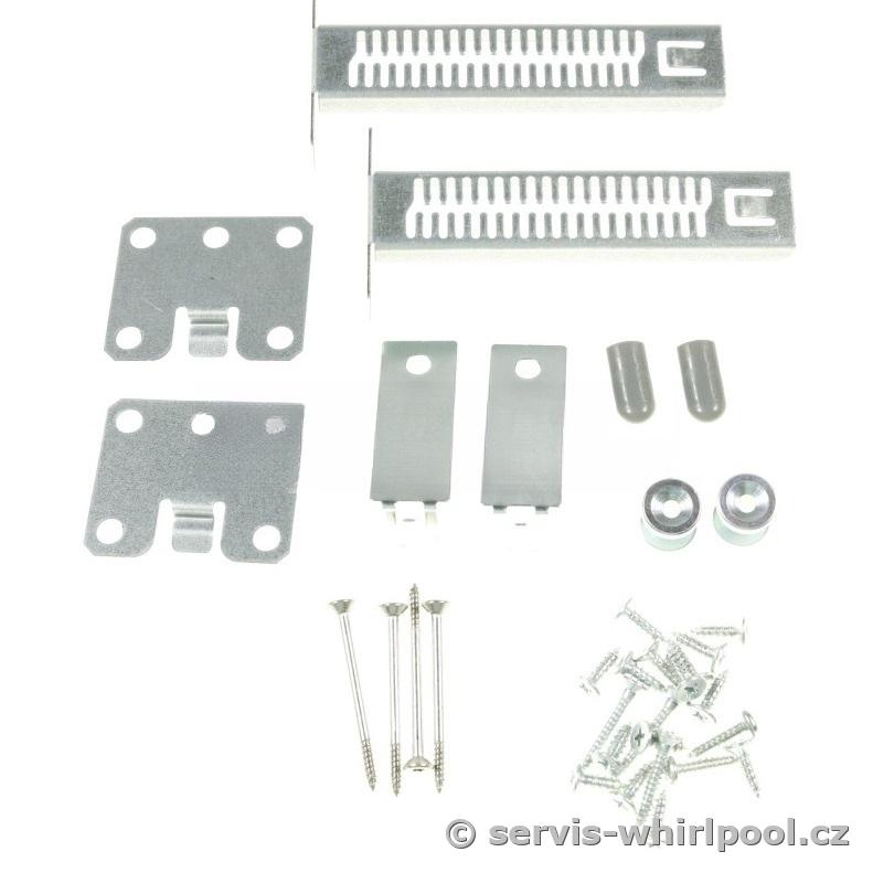 Originální montážní sada je určena pro instalaci vnějšího nábytkového panelu (dekoru) na dveře vestavných myček nádobí značek Whirlpool a Indesit.