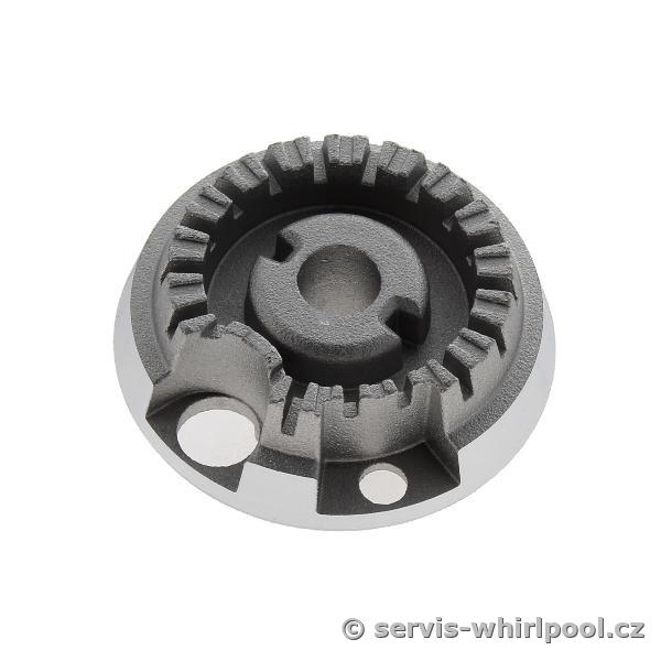 Těleso hořáku - malé pro plynové varné desky Whirlpool, Indesit, Bauknecht, Hotpoint a KitchenAid, Díl je vhodný pro modely, AKT 6420/NB, AKT 7510/WH, GMA 7514/IXL, GOA 9523/WH, GOW 7523/NB a mnoho dalších.