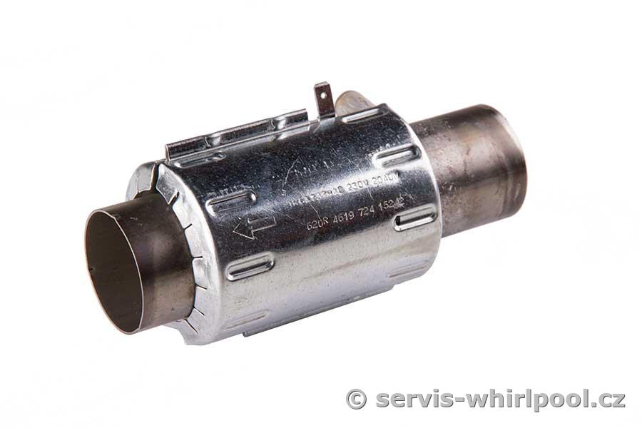 Topení pro myčky Whirlpool. Průtokové topné těleso pro starší modely 60cm širokých myček nádobí Whirlpool, Bauknecht.Výkon 2040 W.