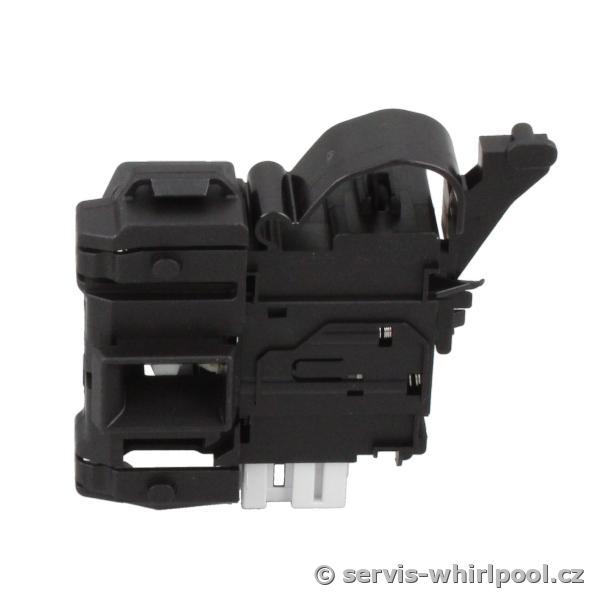 Originální zámek (blokování) dveří pro automatické pračky značek Whirlpool a Indesit. Tento bezpečnostní prvek zajišťuje pevné uzamčení dvířek během pracího cyklu a zabraňuje jejich otevření, dokud není program bezpečně ukončen a voda odčerpána.