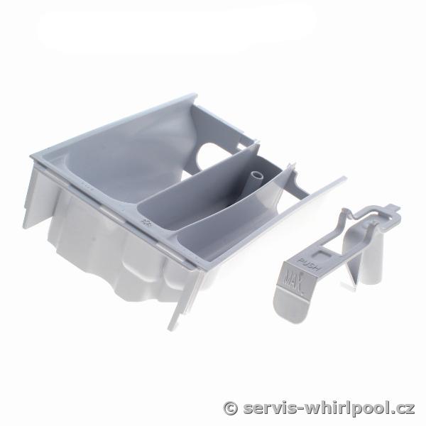 Originální vnitřní šuplík (násypka) pro předem plněné pračky Whirlpool a Bauknecht. Tato zásuvka je rozdělena na komory pro prací prášek, bělidlo a aviváž, čímž zajišťuje jejich správné dávkování během pracího cyklu.