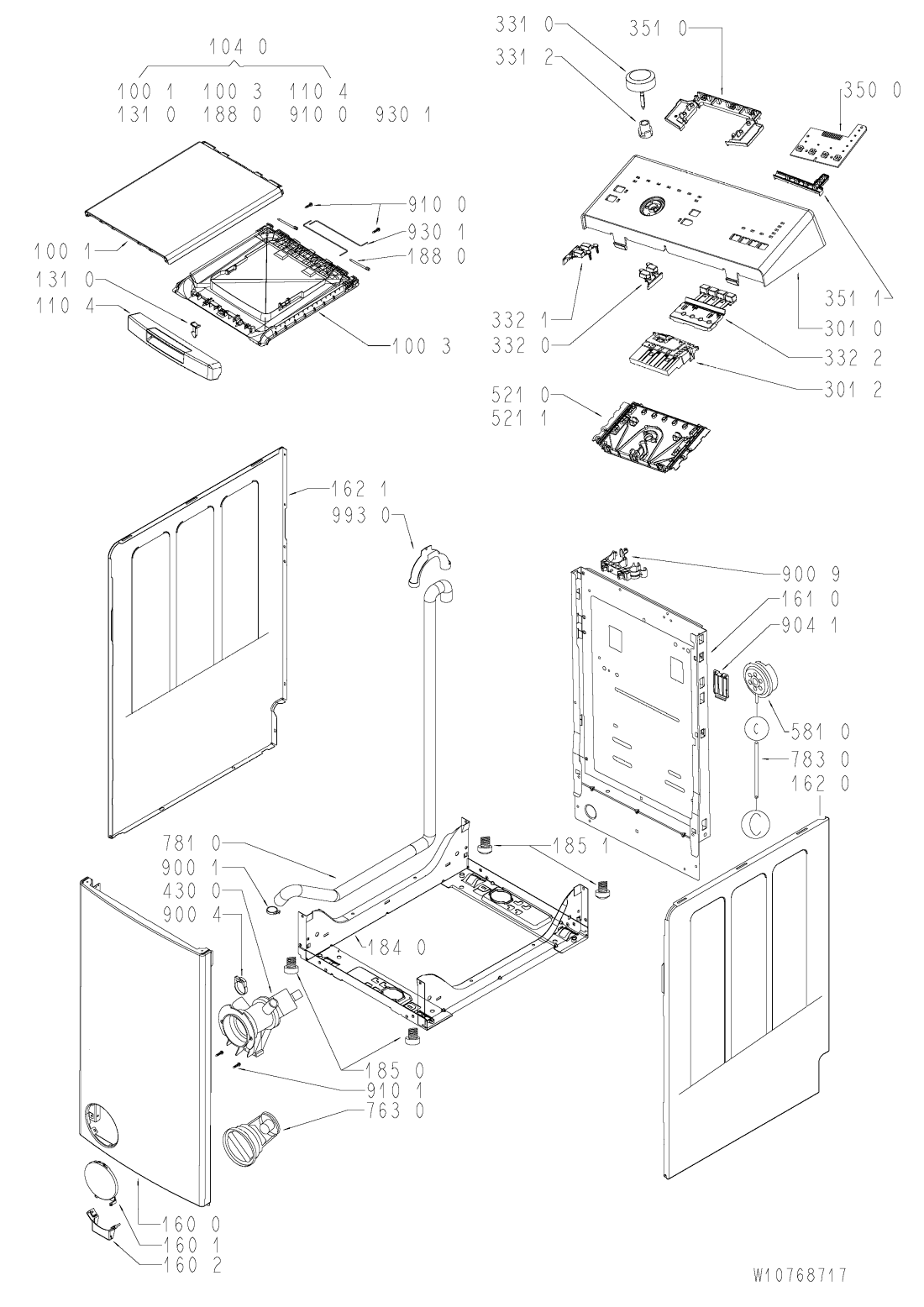 Vnitřní část dveří vrchem plněné pračky Whirlpool, Indesit | 2 445 Kč